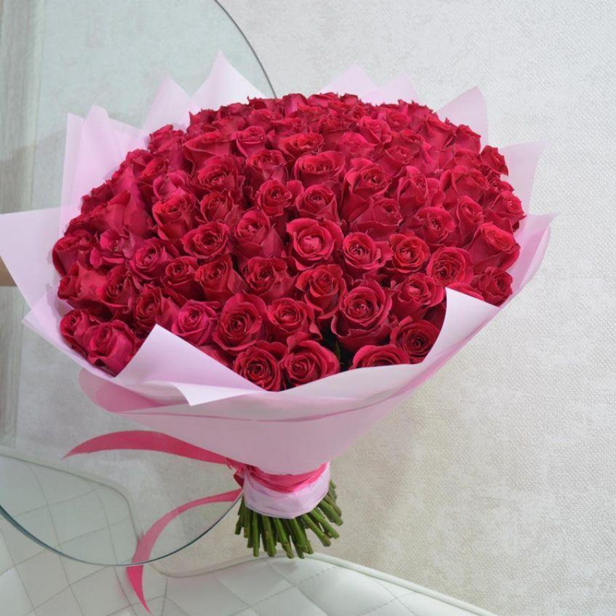Букет из 101 малиновых розы - оригинальный и красивый подарок, который подойдет для любого праздника. Малиновые розы являются символом любви и страсти, а их большой размер говорит о глубине чувства. Такой букет может быть подарен на день рождения, свадьбу, юбилей или просто как знак внимания и заботы о любимом человеке.