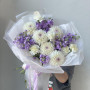 Букет из розовых ранункулюсов и сиреневой матиолы